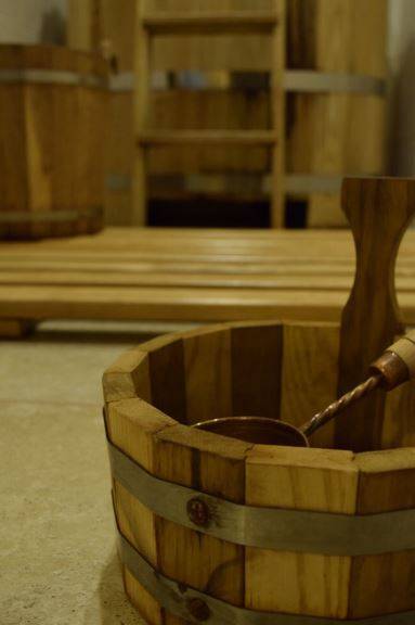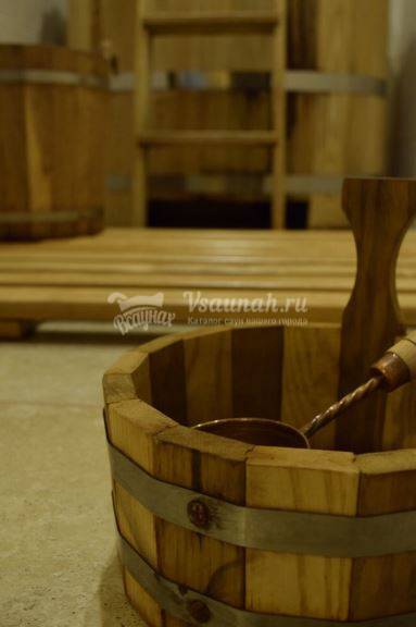 Банька с деревянной купелью и ведром